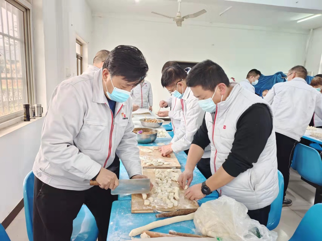 公司駐廠領(lǐng)導(dǎo)、一些干部職工緊張忙碌起來,有的搟有的包,場面溫馨感人,元寶形、月牙形,不同形狀的餃子整齊地排列在一起足有一萬多只,不僅分擔(dān)了后勤保障人員的工作壓力,還用實(shí)際行動(dòng)彰顯著嚴(yán)肅活潑的工作作風(fēng)和凝聚奮進(jìn)的精神品質(zhì)。好吃不過餃子,溫暖不過集體。在這個(gè)特殊時(shí)期能吃到手工水餃令人難忘,雖然暫時(shí)不能和家人、親友團(tuán)聚,但大家相互關(guān)心、相互鼓勵(lì)讓每位員工感受到了大家庭的溫暖,心底涌起一股股暖流。
