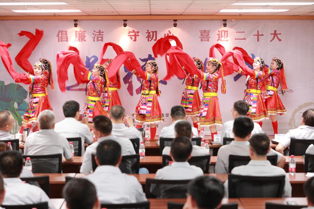 經典配音《光影頌初心》領著我們重溫熱血青年在南湖紅船上的偉大理想,感受革命人的熱情和睿智,在國際歌的渲染下,“無產階級在這個革命中失去的只是鎖鏈,他獲得的將是整個世界”,讓人熱血澎湃;原創詩朗誦《揚帆起航》熱情歌頌了為公司發展付出心血的每位員工,表達了對公司的無限深情;《夸夸咱自己》的包裝發運組同事,手持鑼鼓、話語幽默,用家鄉話夸出了為公司發展堅守在一線的大家;安全環保組同事帶來的健身操《本草綱目》激情勁爆,活力滿滿,進一步展現了廣大職工熱愛生活、積極向上的精神風貌。