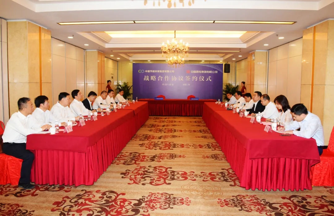 中國西電集團辦公室、戰(zhàn)略發(fā)展部、運營工作部,中國節(jié)能環(huán)保集團合作發(fā)展部、中國節(jié)能生態(tài)環(huán)境科技有限公司、中國啟源工程設計研究院、中國節(jié)能環(huán)保裝備股份有限公司等負責人參加簽約儀式。