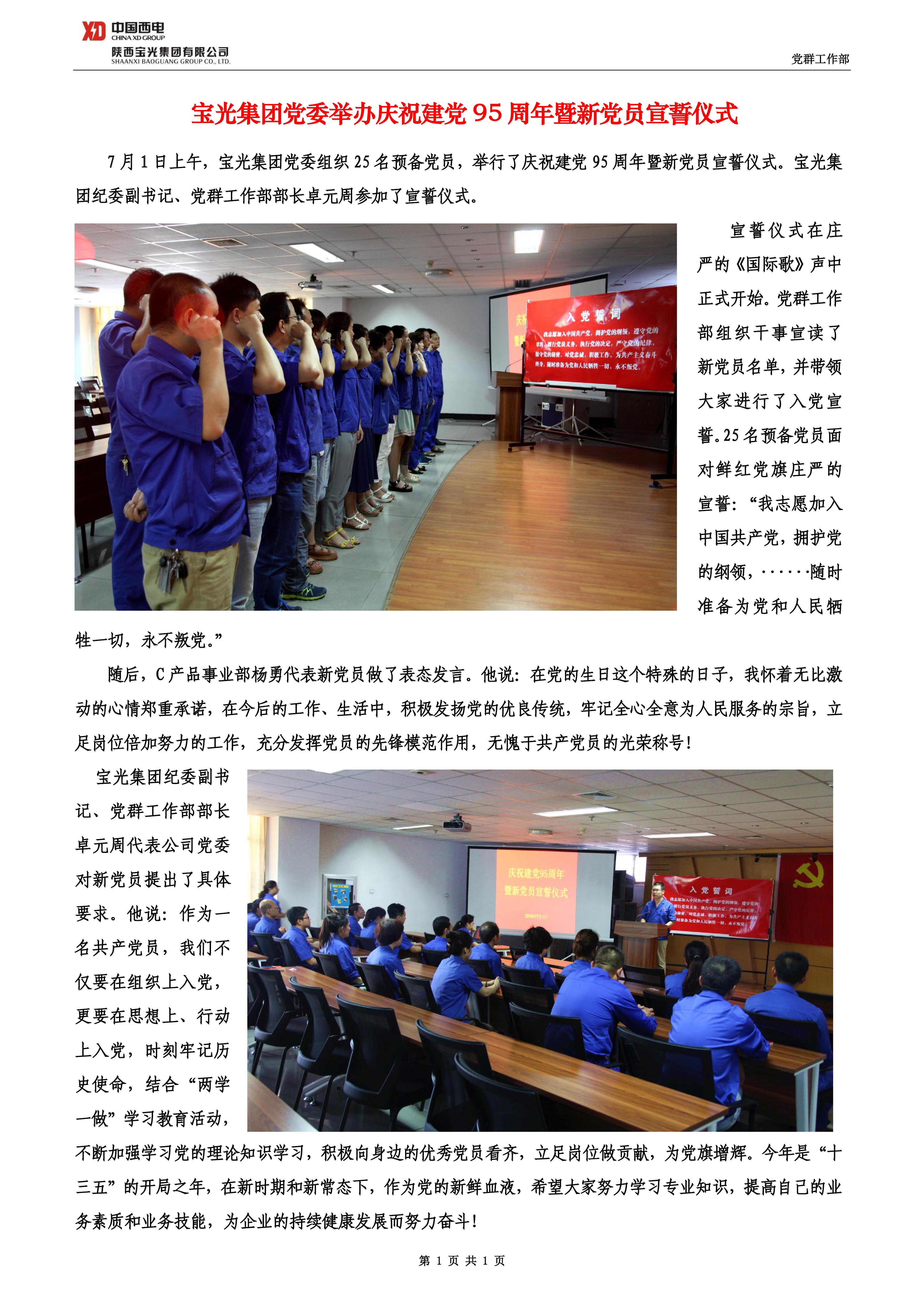 寶光集團黨委舉辦慶祝建黨95周年暨新黨員宣誓儀式