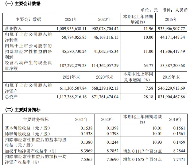 寶光股份2021年度主要財務(wù)指標(biāo)