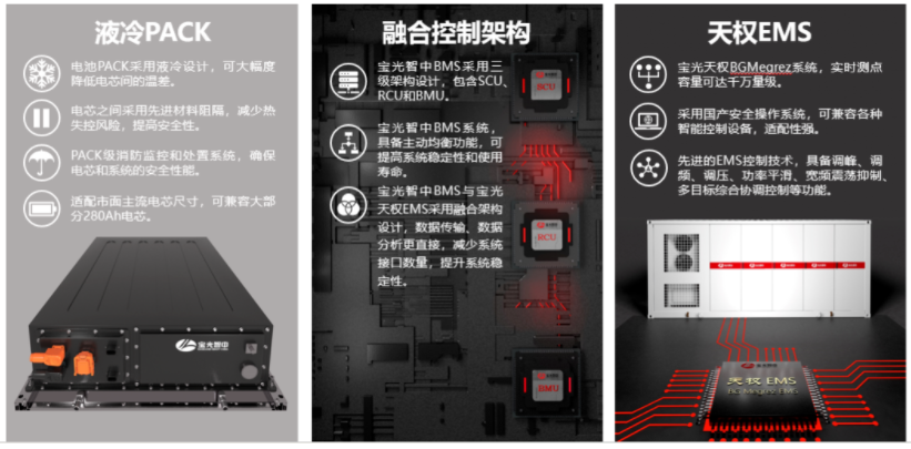 此外,液冷分布式儲能還具有出色的能源密度和快速響應能力,通過使用優化的電池和儲能控制技術,系統能夠在短時間內釋放大量的能量,滿足高功率需求。這使得系統在應對電網峰值負荷、應急電力支持和可再生能源波動等方面具有巨大潛力。在綠色發展的大機遇中,寶光智中將繼續深耕儲能行業,持續為客戶提供安全、穩定、可靠、經濟的儲能解決方案,推動可再生能源的大規模應用,在響應落實國家“雙碳”戰略的同時,為新能源產業發展與升級做出積極貢獻。
